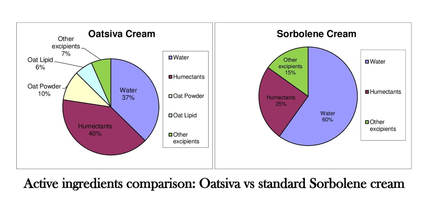 Oatsiva contains a higher concentration of oatmeal compared with most commercially available oatmeal moisturizers.